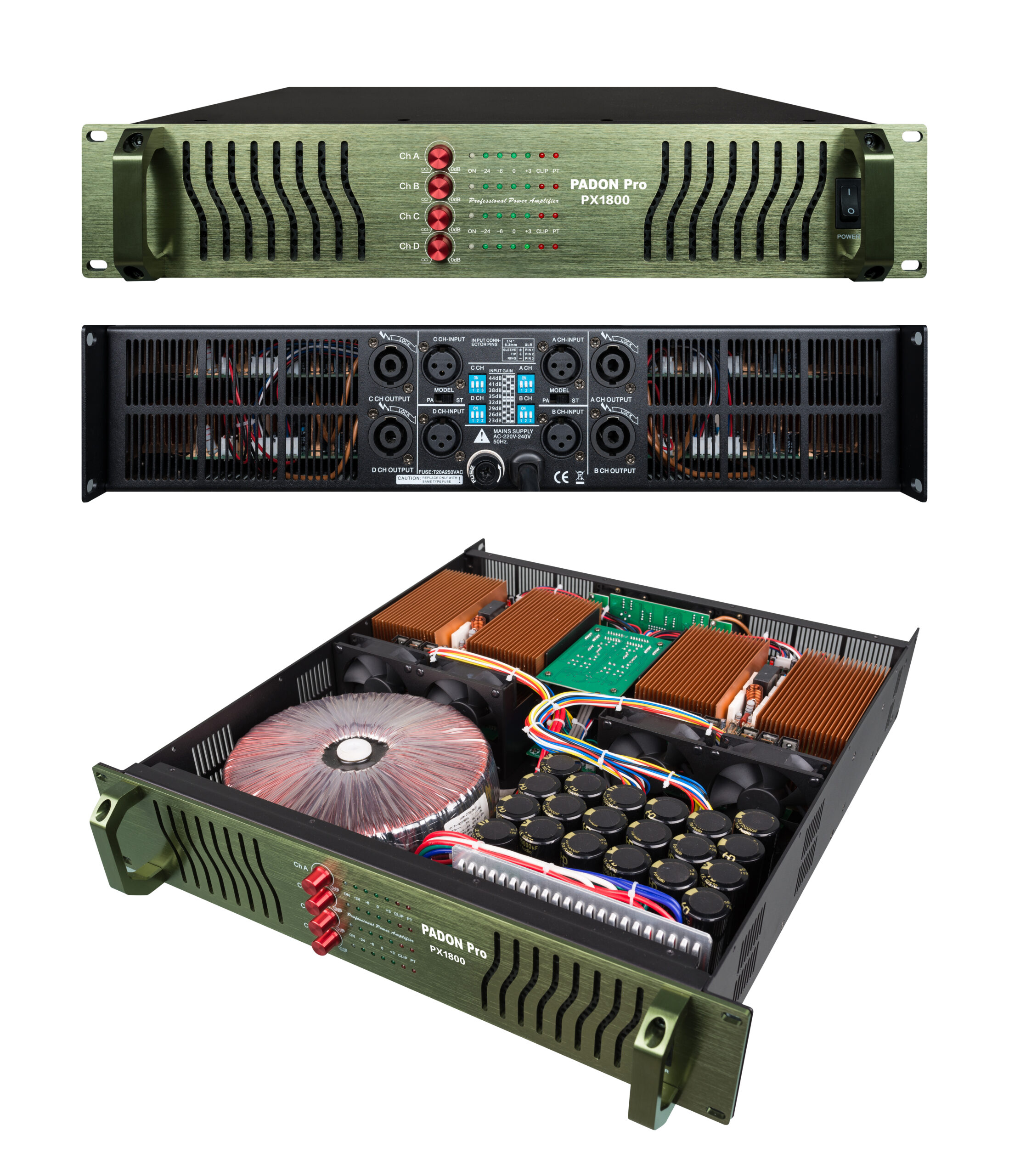 PADON PX1800 Professional amplifier. 8 ohms. Four channel 2u audio amplifier 1800W*2