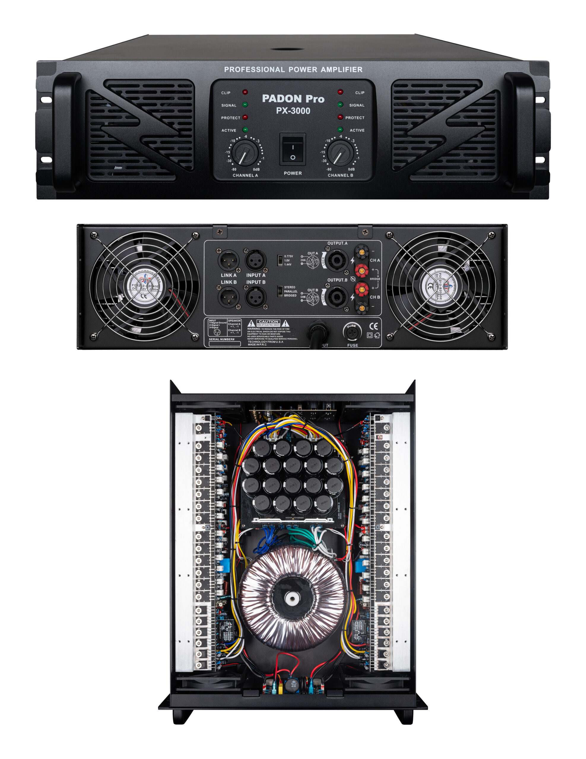 PADON PX3000 professional amplifier, 8 ohms, two channels, 3U high-power,3000WX2 audio amplifier, dual 18 inch sub